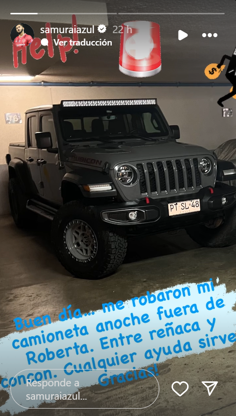 Asimismo, a través de Instagram, Herrera compartió una imagen de su vehículo que fue visto por última vez pasando por un pórtico del tag en avenida Departamental, Región Metropolitana.