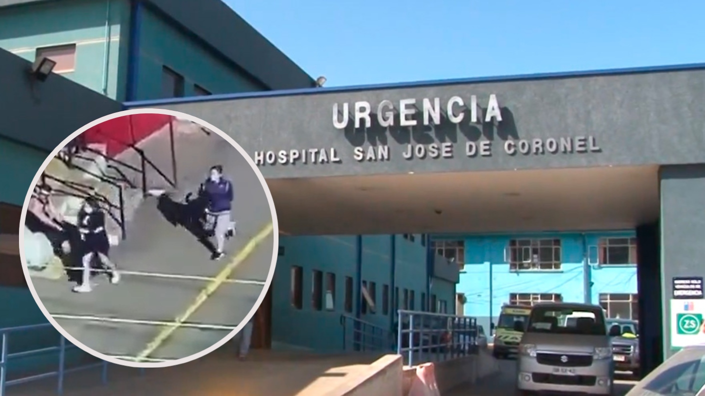 Cámaras de seguridad de la ciudad de Coronel y cercanas al Hospital San José de aquella comuna, captaron el momento en que la mujer aparece corriendo con la lactante entre sus brazos.