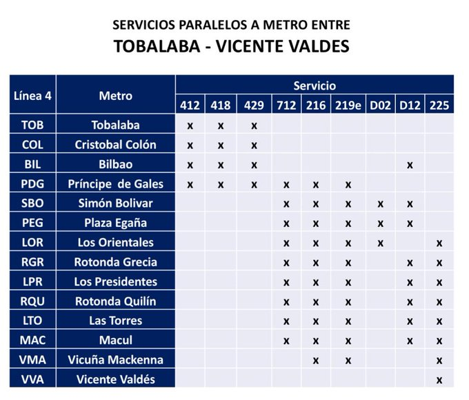 Además, entregó información en cuanto al apoyo a la red de Metro para quienes viajen entre Tobalaba y Vicente Valdes (L4)