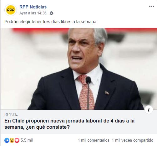 "Cada vez más se parecen a los países del primer mundo esos chilenos. Entienden la importancia de tener a un trabajador satisfecho para que desarrolle su máximo potencial", comentó un usuario. Mientras que otra persona sostuvo que "el Perú copió el tema de las AFP y no supo plantear en el sistema peruano. Imaginen con la jornada laboral de 4 días. Nos vamos en picada".