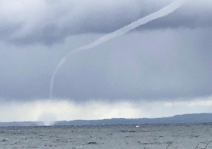 Una "tromba marina" se vio por sobre sus aguas. Este fenómeno no suele ser peligroso de no tocar tierra, pero sí pudo haber afectado alguna embarcación.