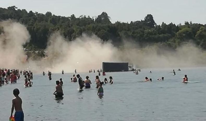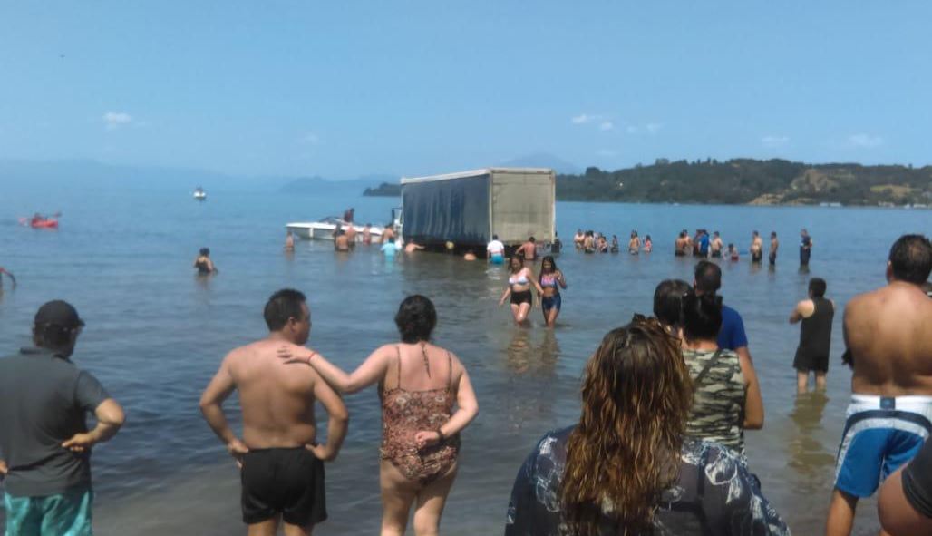 Un tremendo susto fue el que pasaron decenas de veraneantes en Frutillar, luego que un camión ¾ tuviera problemas en los frenos y terminara al interior del lago Llanquihue.