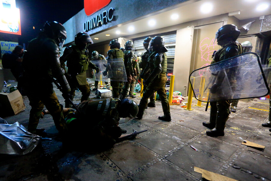 Lee también: CNC lamenta saqueos de locales y llama a “todos los actores políticos a condenar sin eufemismos la violencia”En tanto, se informó que 45 Carabineros resultaron con lesiones de diversa gravedad, siendo llevados la mayoría de ellos al Hospital de la institución.