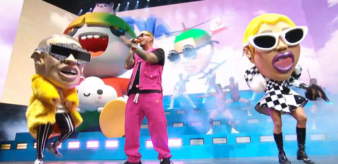 Lee también: Candidato presidencial de EE.UU “revive” a Tupac Shakur para promocionar campaña con hologramasAl momento de cantar "I Like It" el colombiano subió al escenario a dos figuras gigantes que representaban a la Cardi B y al cantante de trap Bad Bunny.