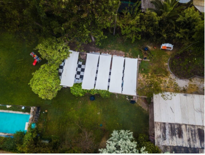 En cuanto a los espacios comunes, la casa contaría con un patio que incluiría unaamplia piscina y terraza. También contaría con un bar de piedras y una cocina amoblada.