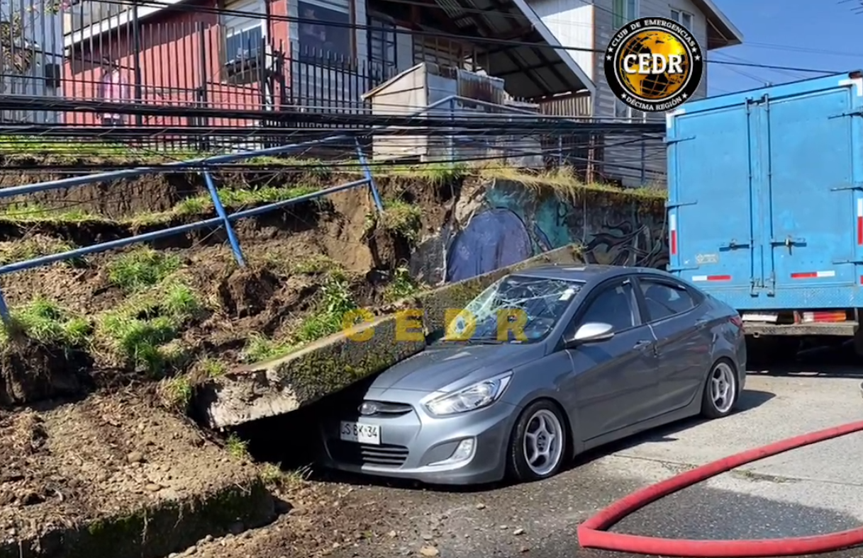 Este jueves, un video registró el momento exacto en que un muro cayó en una población de la ciudad de Puerto Montt, mientras bomberos trabajaban en el lugar apagando un incendio que se registraba en una casa.