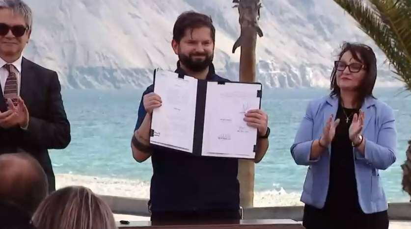 Durante la ceremonia en Mejillones, el mandatario destacó que los nuevos impuestos a la gran minería "no van a significar solamente más recaudación; no son para agrandar las arcas del Estado, sino que son para el beneficio de las personas y las familias de Chile".