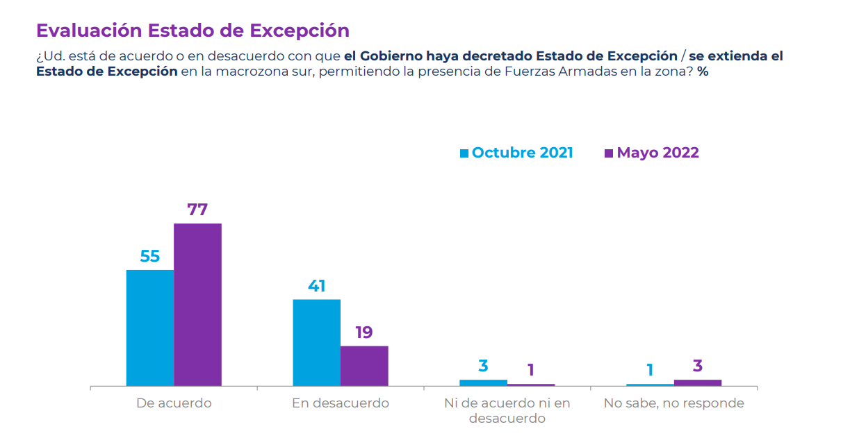 El mencionado Estado de Emergencia fue ampliamente respaldado por la ciudadanía, según consignó una nueva encuesta Plaza Pública Cadem.