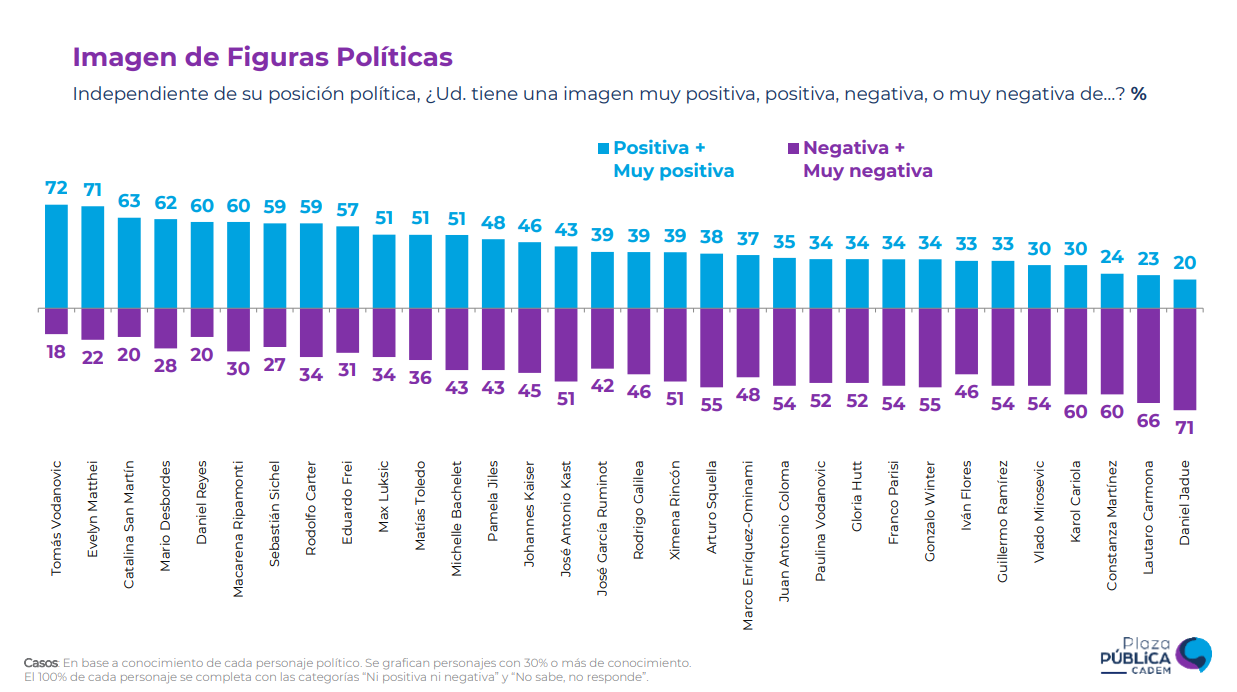 De acuerdo al sondeo, ante la pregunta "independiente de su posición política, ¿usted tiene una imagen muy positiva, positiva, negativa, o muy negativa de…?", los encuestados evaluaron de forma positiva a Vodanovic.