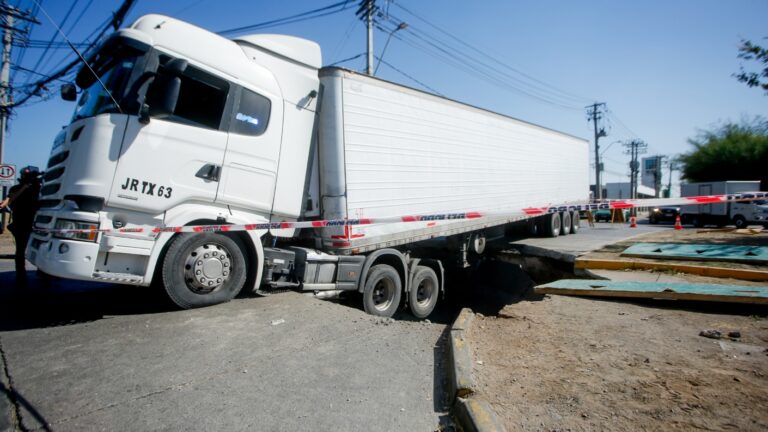 Cámara captó el momento exacto: Camión cargado con 20 toneladas de queso cae a socavón en Renca