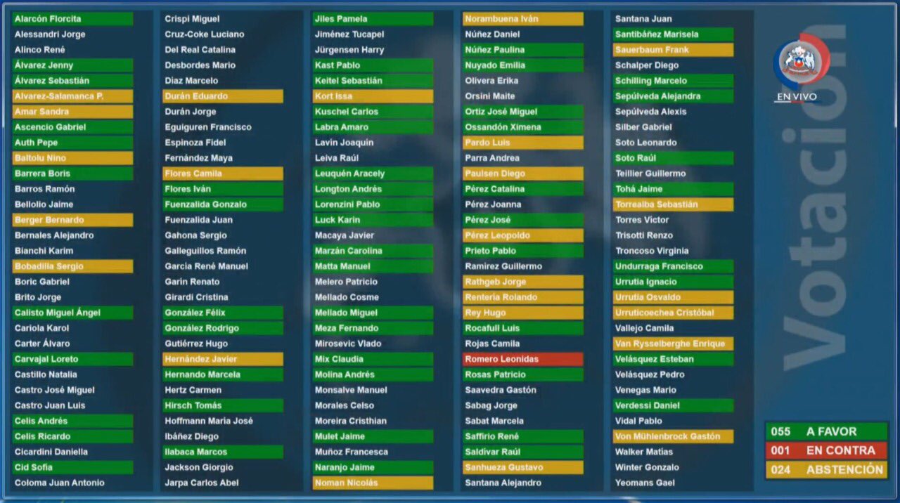La votación sólo contó con 55 votos a favor, 24 en contra y una abstención, y se requerían 62 inclinaciones favorables, por lo que la instancia fue desechada por falta de quórum.