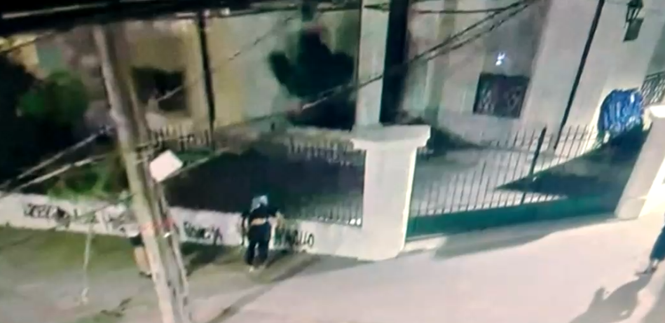 La situación quedó registrada en una cámara de seguridad del sector y durante horas de esta mañana las paredes con rayados fueron pintadas.