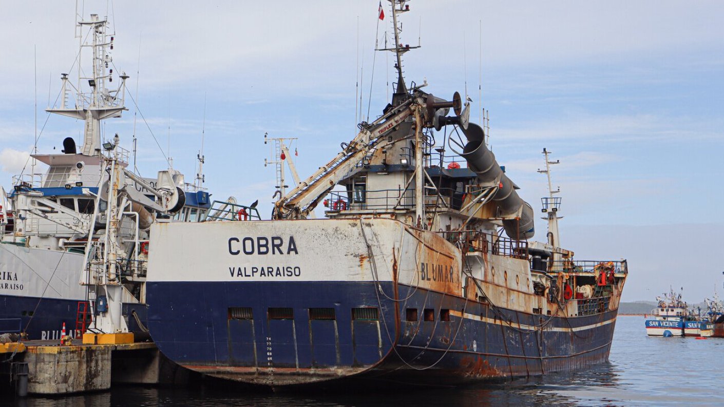 Hasta el momento, el barco Cobra está detenido en el muelle de la empresa Blumar y está siendo custodiado por personal de la Policía Marítima.