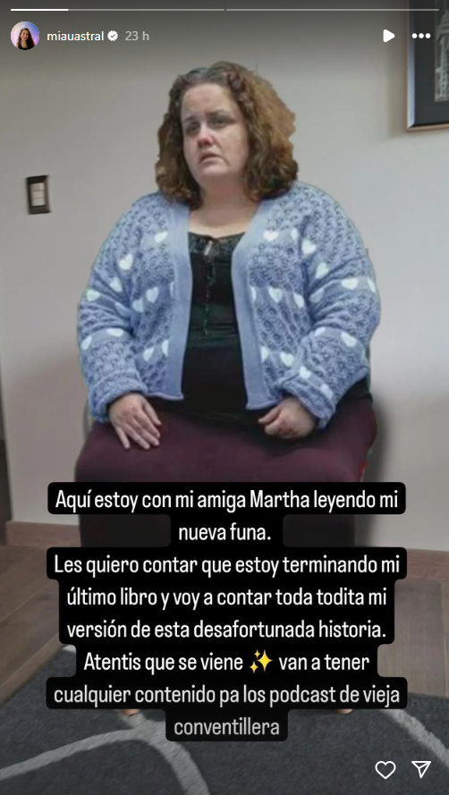 En su Instagram @miauastral, la influencer compartió una historia hace aproximadamente 23 horas (una hora después de darse a conocer públicamente el hecho) e ironizó con la serie, agregando una imagen de su protagonista llamada Martha.