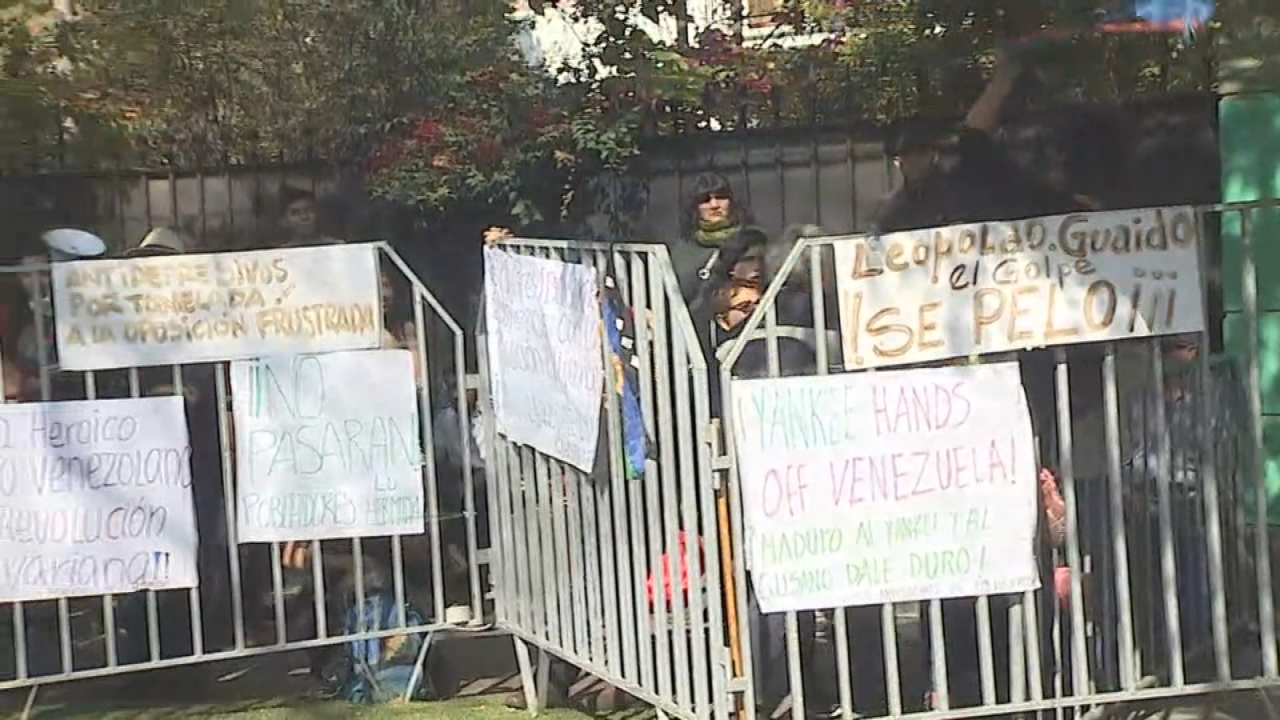 Hasta la embajada de Venezuela en Chile, en Providencia, llegaron manifestantes que están a favor y en contra de Nicolás Maduro, para dar a conocer su posición luego que Juan Guaidó, presidente de la Asamblea Nacional, pidiera el levantamiento de los militares.