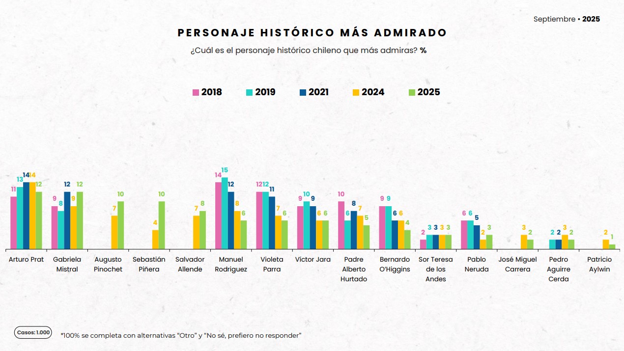 El Estudio 5C de Cadem sorprendió esta semana con un especial chilenidad que hizo una radiografía al país. "¿Cuál es el personaje histórico chileno que más admiras?", fue una de las preguntas más llamativas.