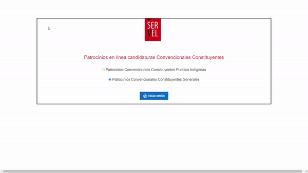 Primero, debemos ingresar al sitio web del Servel e ir a la sección "Patrocinios Convencionales Constituyentes":
