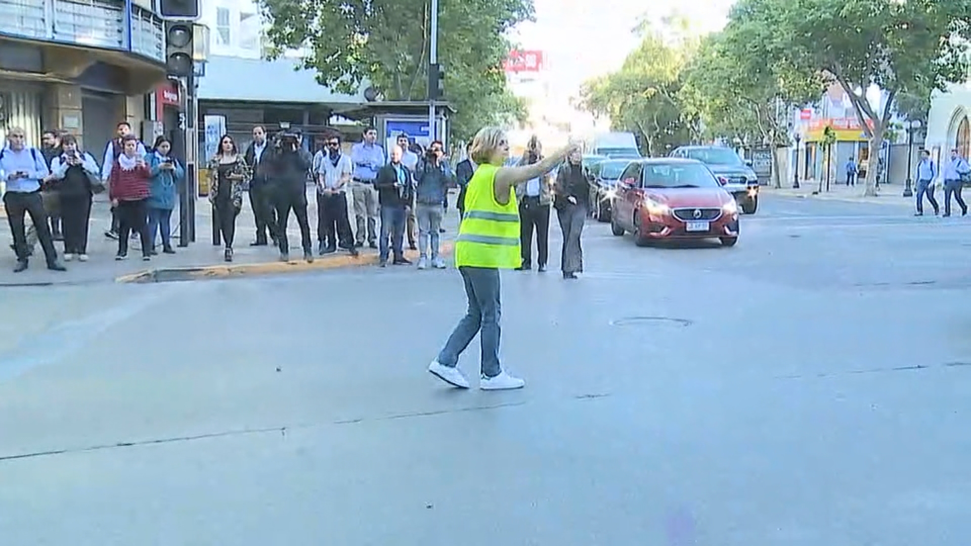 Es por esto que en la esquina de Av. Providencia con Pedro de Valdivia la jefa comunal, con chaleco amarillo, comenzó a ordenar del tránsito.