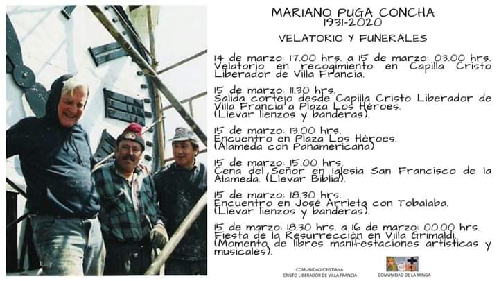 A través de un comunicado, la Comunidad de La Minga informó que los restos del padre Mariano serán velados este sábado, desde las 17:00 horas, en la capilla Cristo Libertador, ubicada en Villa Francia.