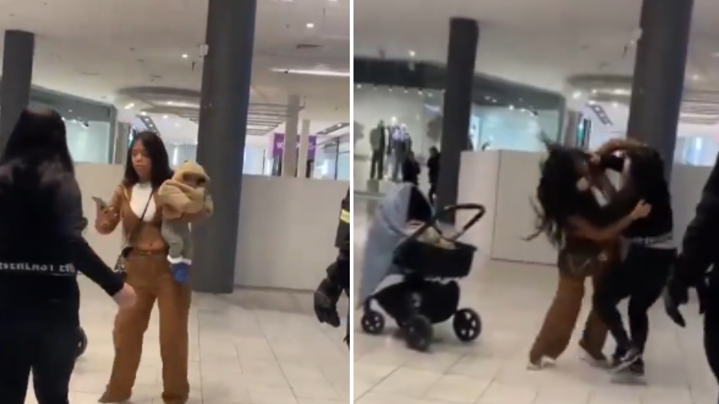 En el video viralizado en redes sociales se muestra a las involucradas intercambiar una serie de gritos antes de empezar a pelear en la zona de las escaleras mecánicas del recinto.