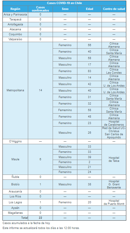 Lee también: Ministro Figueroa y aislamientos de alumnos por coronavirus: “No significan un rezago en su proceso formativo”Además, se suma un nuevo caso en la Región del Maule: un joven de 24 años que se encuentra en el Hospital Regional de Talca.
