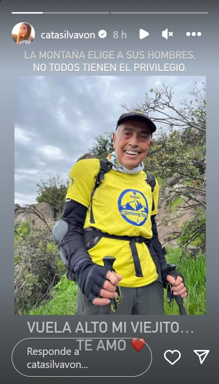"La montaña elige a sus hombres. No todos tienen el privilegio", escribió la intérprete en una historia en Instagram, acompañada del texto "vuela alto, mi viejito... Te amo".
