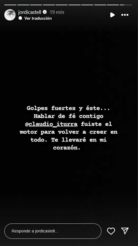 Enseguida, el fotógrafo replicó la noticia y escribió un sentido mensaje "golpes fuertes y este. Hablar de fe contigo... fuiste el motor para volver a creer en todo. Te llevaré en mi corazón".