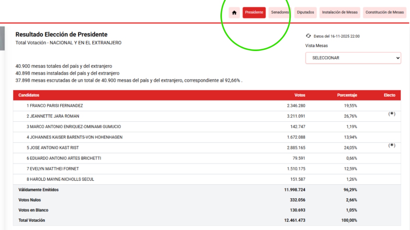 Con sobre el 90% de las mesas escrutadas en las presidenciales, y sobre el 50% en las parlamentarias, ya puedes conocer cómo se mueven las tendencias. Revisa acá los resultados.