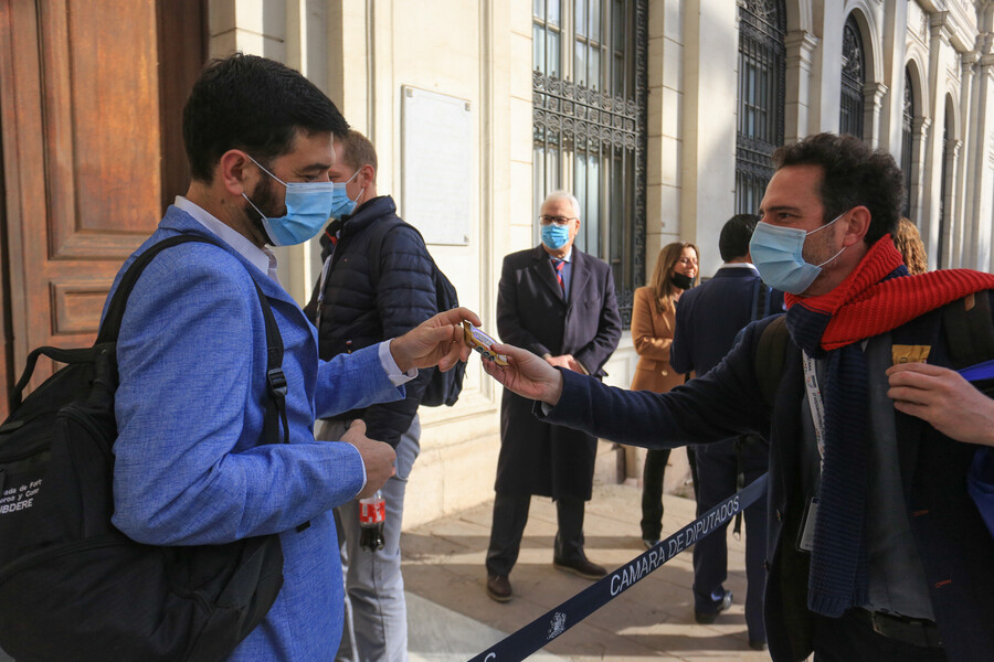 Durante la mañana de este jueves, un grupo de convencionales de Vamos por Chile llegó al ex Congreso para participar de una nueva sesión de la Convención Constitucional, pero no lo hicieron como cualquier día.