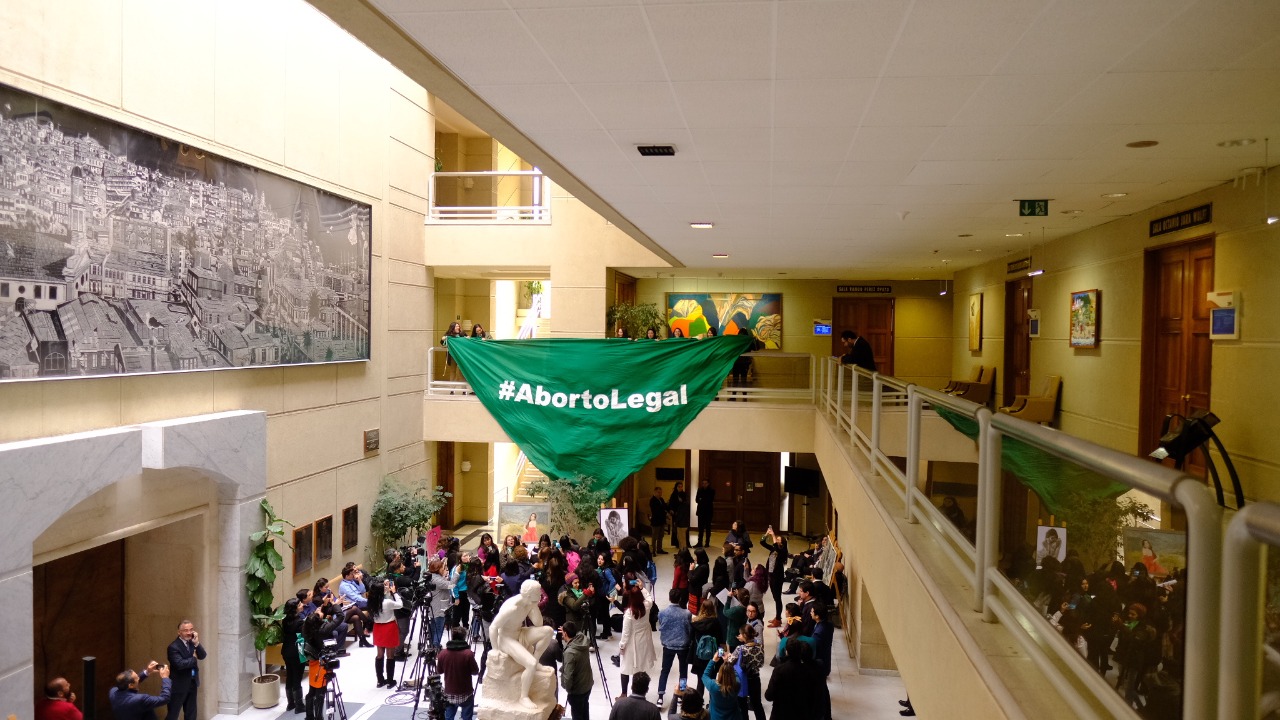 Lee también: Fin de la Ley Reservada del Cobre: Codelco dejará de financiar a las FF.AA.Con un pañuelo verde gigante de fondo, con la leyenda #AbortoLegal inscrita en el centro, las parlamentarias Loreto Carvajal, Claudia Mix, Gael Yeomans, Camila Rojas, Catalina Pérez y Natalia Castillo apoyaron la manifestación con un despliegue de varios pañuelos verdes colgando de sus cuellos.