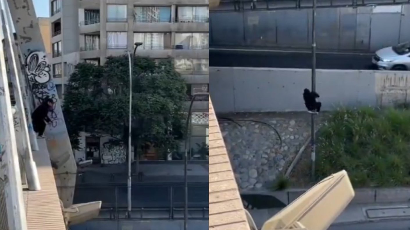 A través de redes sociales se ha viralizado la peligrosa hazaña de un seleccionado chileno de parkour en plena Autopista Central.