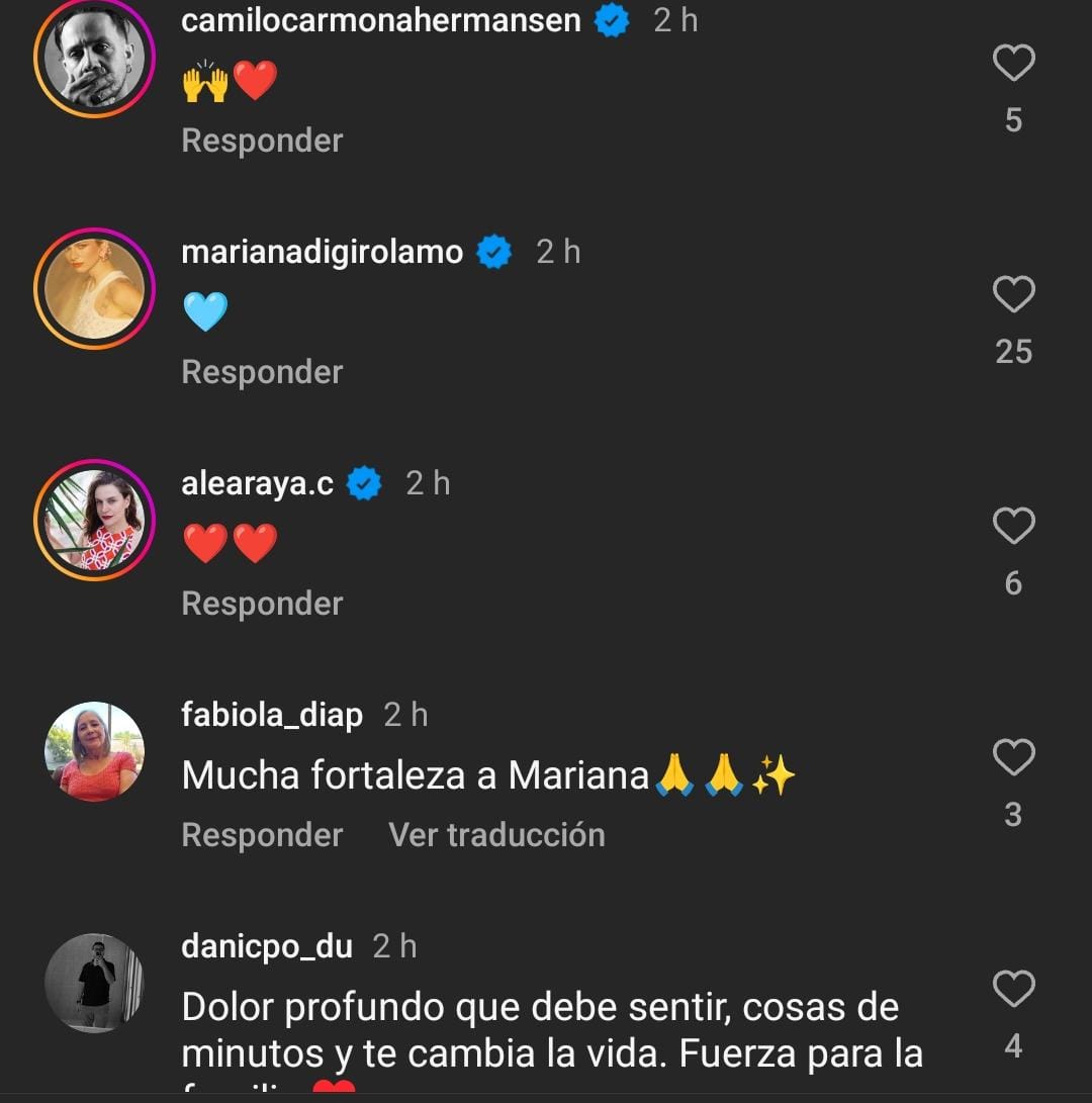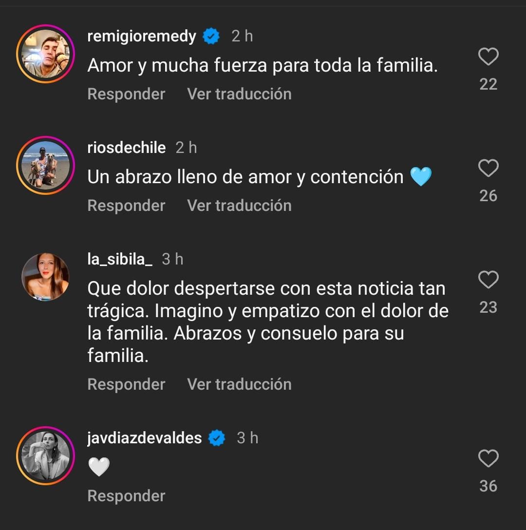 Remigio Remedy y Cristián Riquelme fueron otros de los actores que quisieron expresar sus condolencias al escribir: "Amor y mucha fuerza para toda la familia" y "Sin palabras".