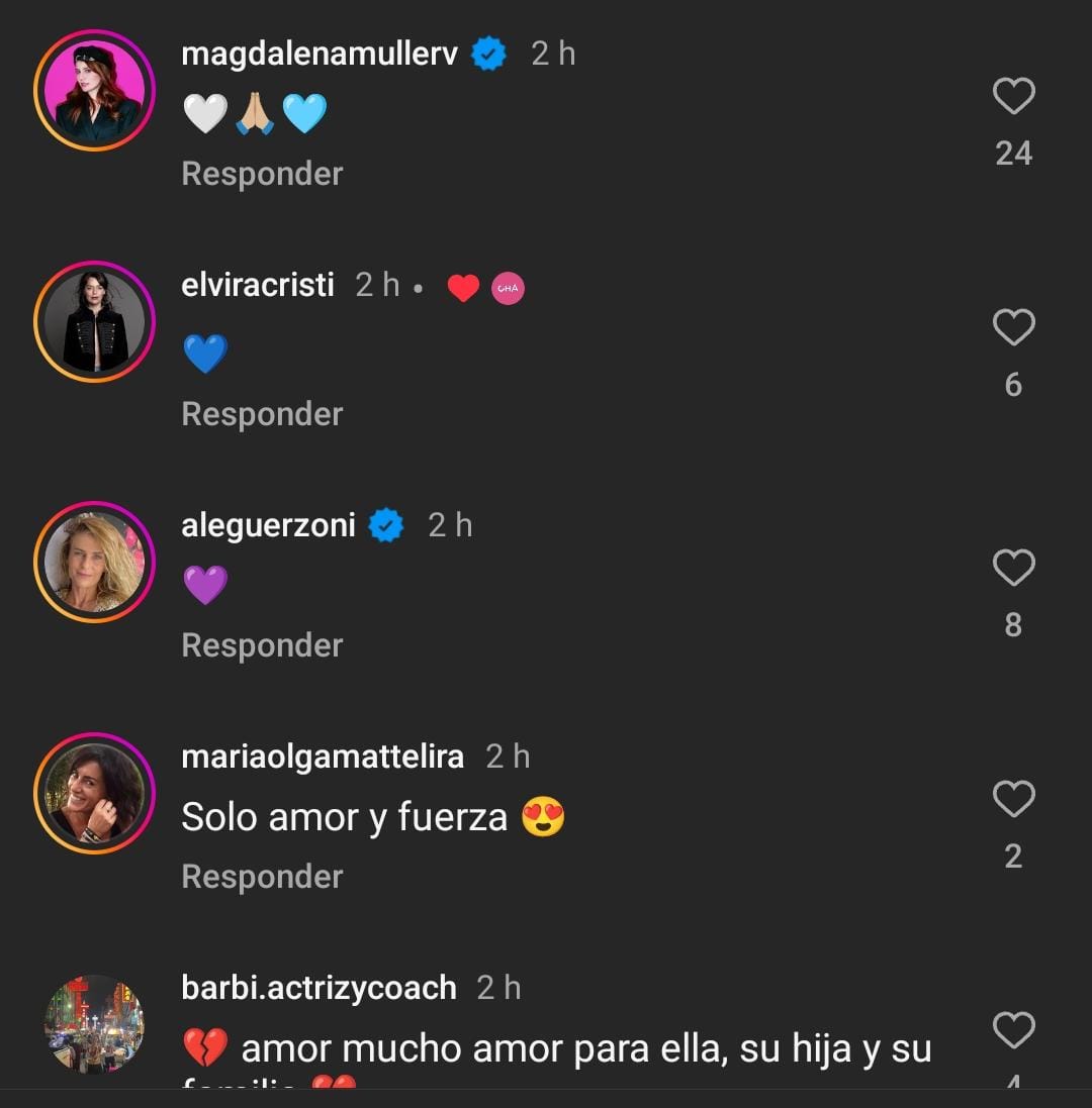 Desde Carla Jara pasando por Mariana Di Girolamo y Lorena Capetillo se hicieron parte de los comentarios para enviar sostén y soporte a la actriz que está atravesando un complejo momento.