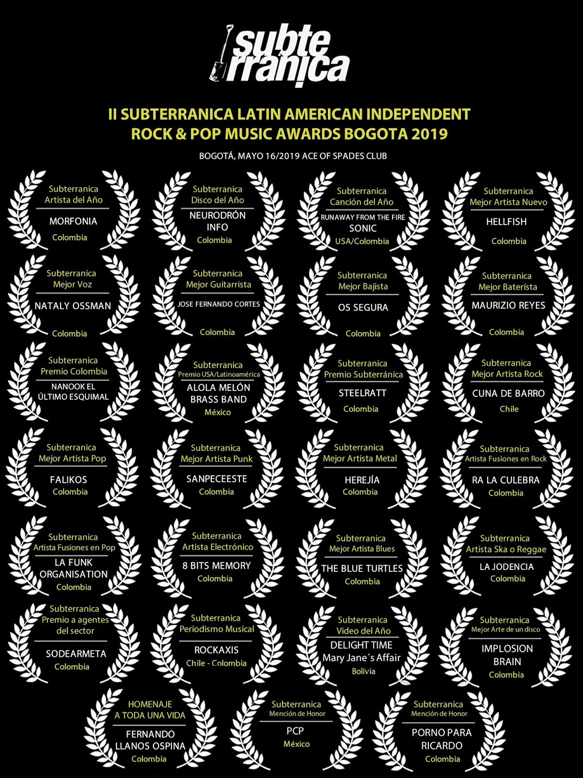 El grupo musical antofagastino Cuna de Barro se quedó con el galardón a "Mejor Artista de Rock" en la segunda entrega de los Premios Subterránica, de origen colombiano y especializados en rock y pop independientes, cuya finalidad es el reconocimiento a los trabajos musicales del continente.