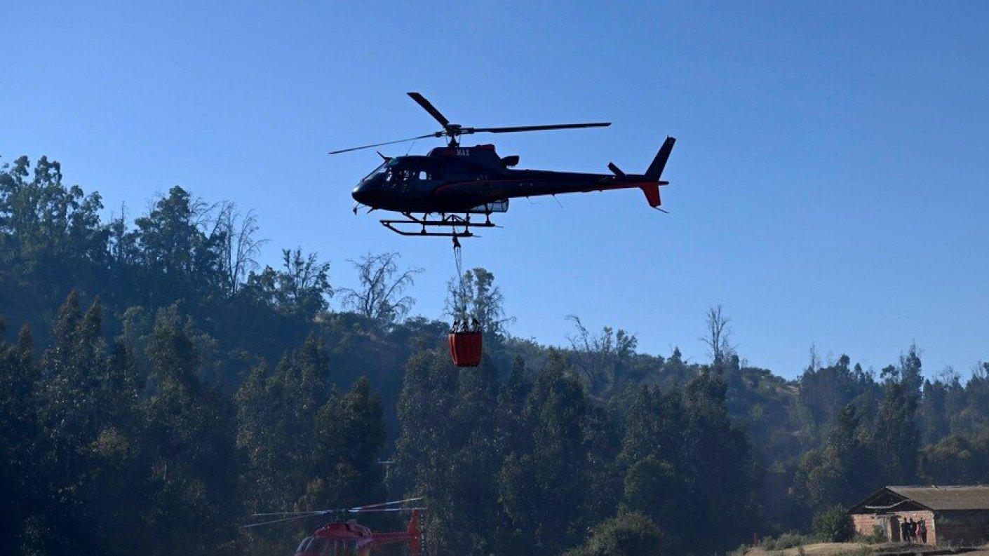 En el lugar trabajan un técnico, dos brigadas, un avión cisterna, dos helicópteros, un camión cisterna y maquinaria pesada de Conaf, además de Bomberos de Curacaví.