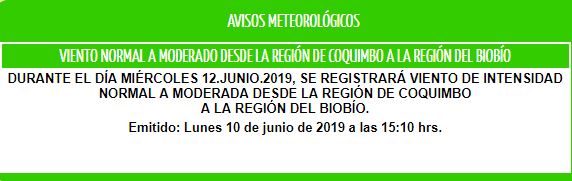 En coordinación con #OnemiRM declaramos #AlertaTempranaPreventiva para la #RMdeTodos por vientos entre el 11 y 13 de junio. Esta medida busca mantener preparados todos los recursos técnicos/humanos en caso de cualquier emergencia. #StgoLoCuidamosTodos pic.twitter.com/hjdwex5ofq— Intendencia RM 🇨🇱 (@IntendenciaRM) June 10, 2019
