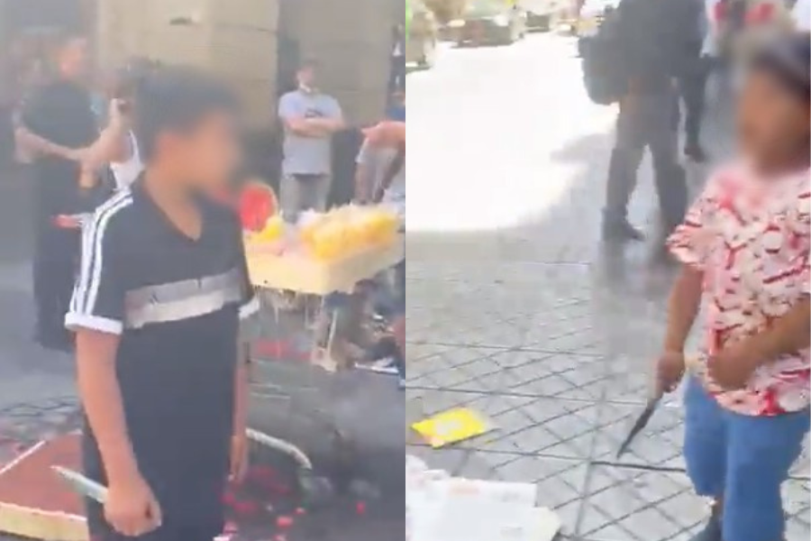 En el registro, que se volvió viral en las redes sociales, se puede ver a dos menores de edad amenazando con armas blancas a personas adultas que, aparentemente, estaban realizando labores de fiscalización.
