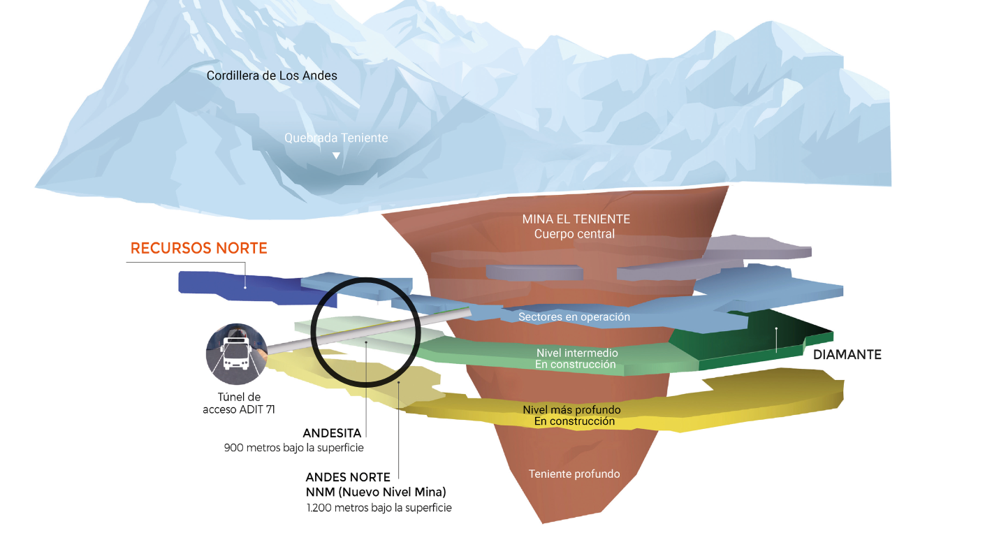 En la siguiente imagen, la zona aparece demarcada por un círculo negro y muestra el mapa del yacimiento donde se tuvo contacto con ellos por última vez, específicamente en el sector Andesita de la mencionada mina.