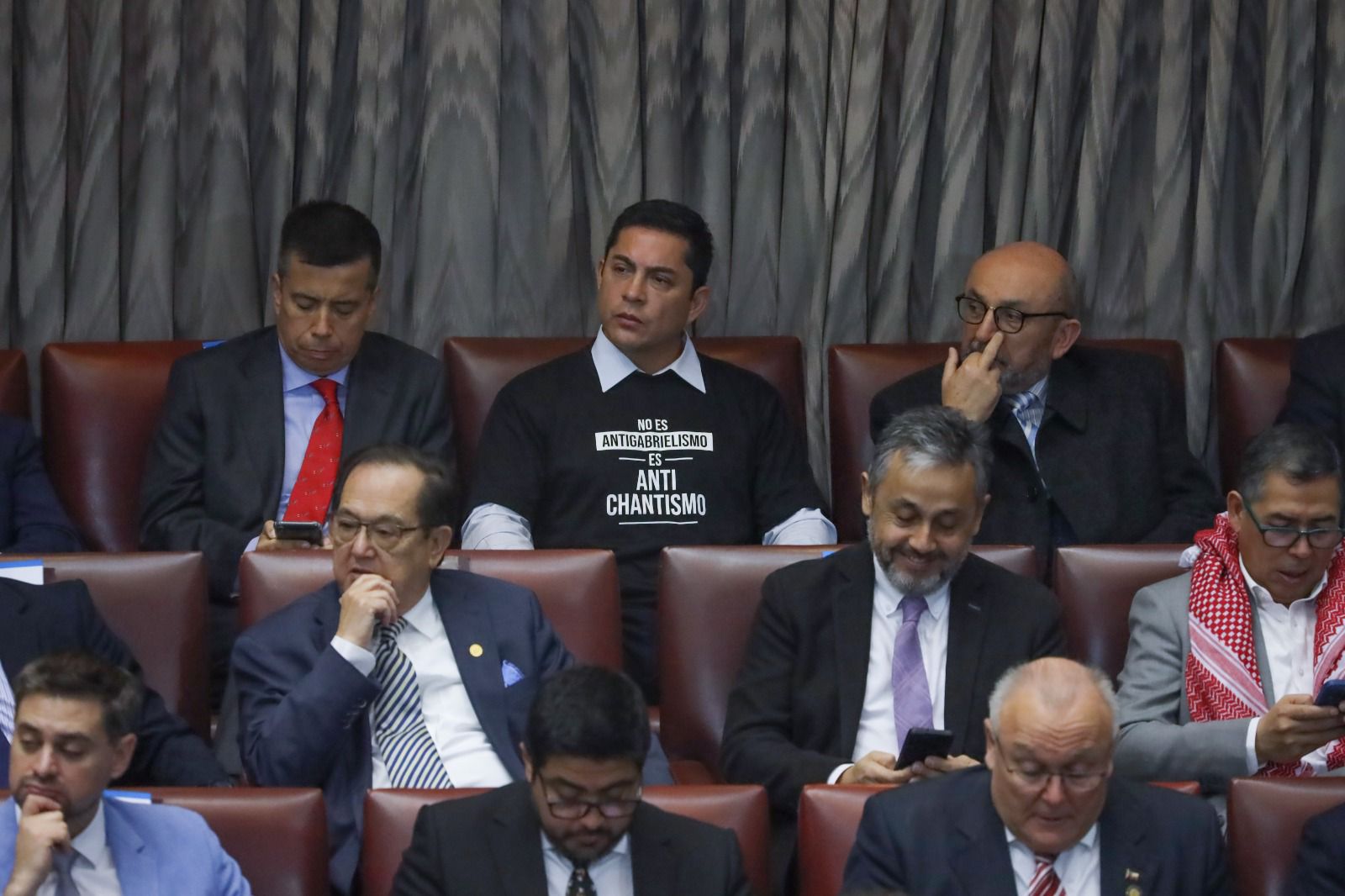 Hasta dicho lugar llegó el diputado de Renovación Nacional, Jorge Durán, vistiendo una polera con la frase: “No es antigabrielismo, es antichantismo”.