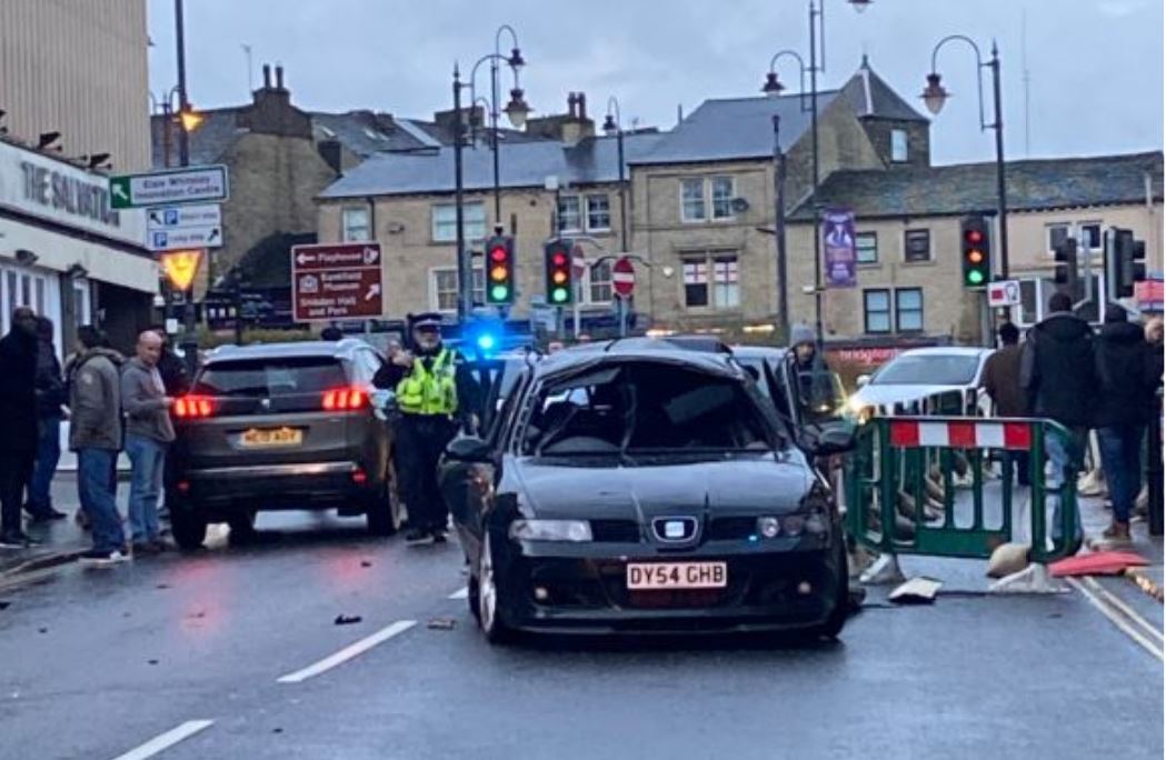 El conductor resultó con lesiones leves y el estruendo afectó hasta las vitrinas de los locales comerciales del sector de Fountain Street, Halifax, en Reino Unido.