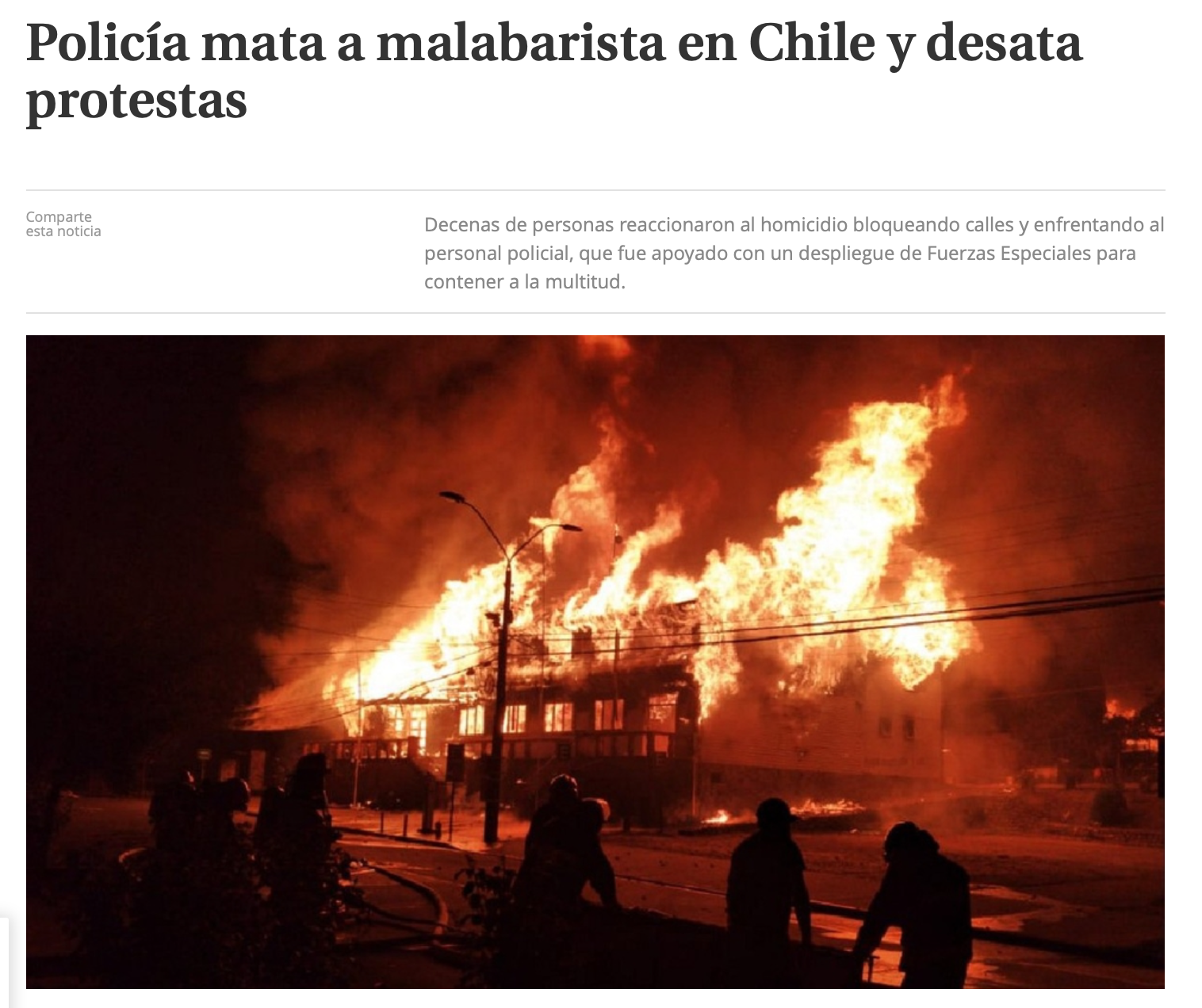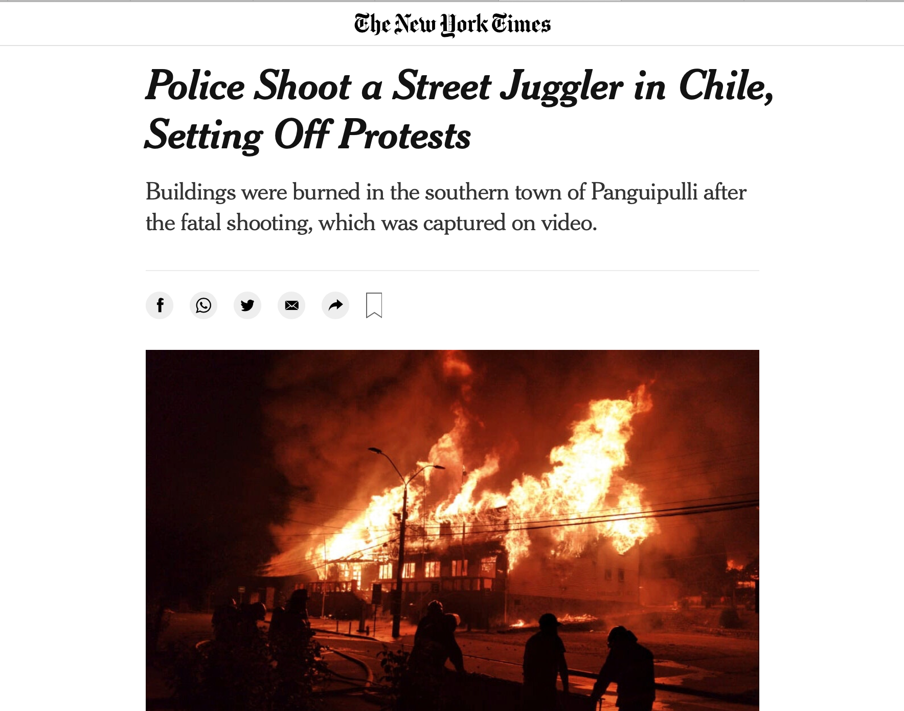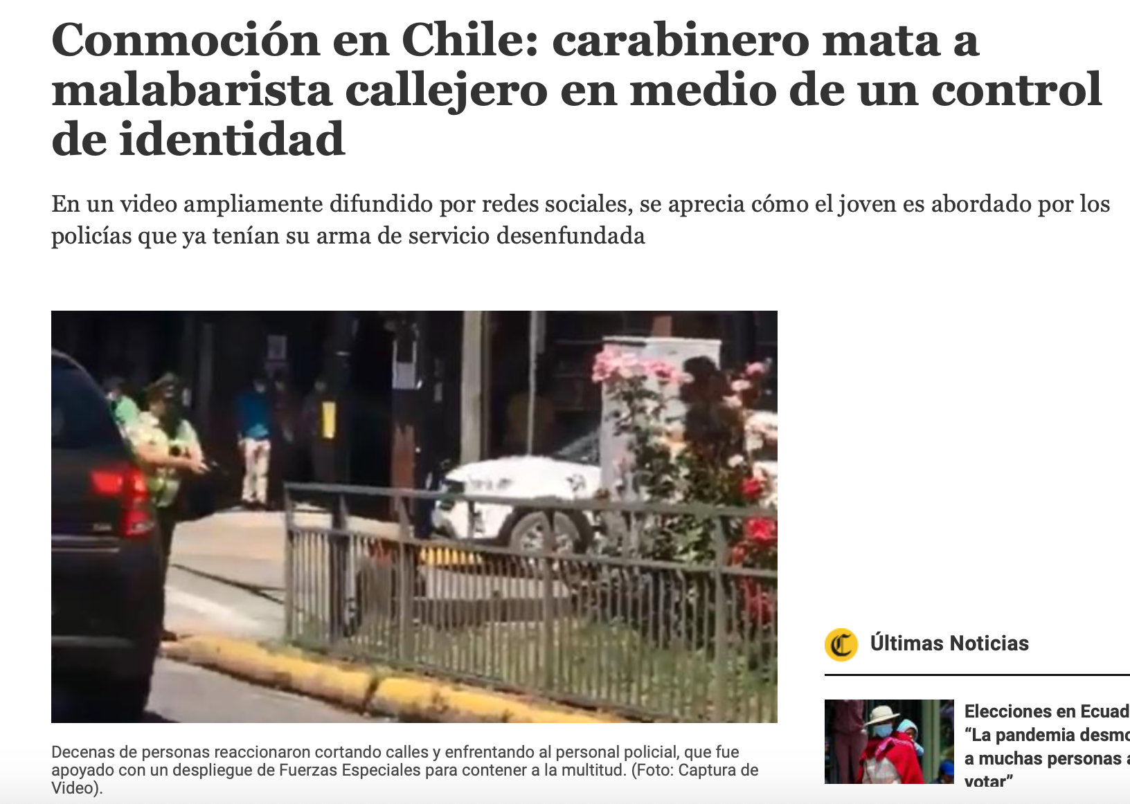 La muerte de un joven malabarista a manos de Carabineros causó una serie de reacciones tanto a nivel nacional como internacional debido a la difusión del video que captó el momento exacto del baleo al joven en la comuna de Panguipulli.