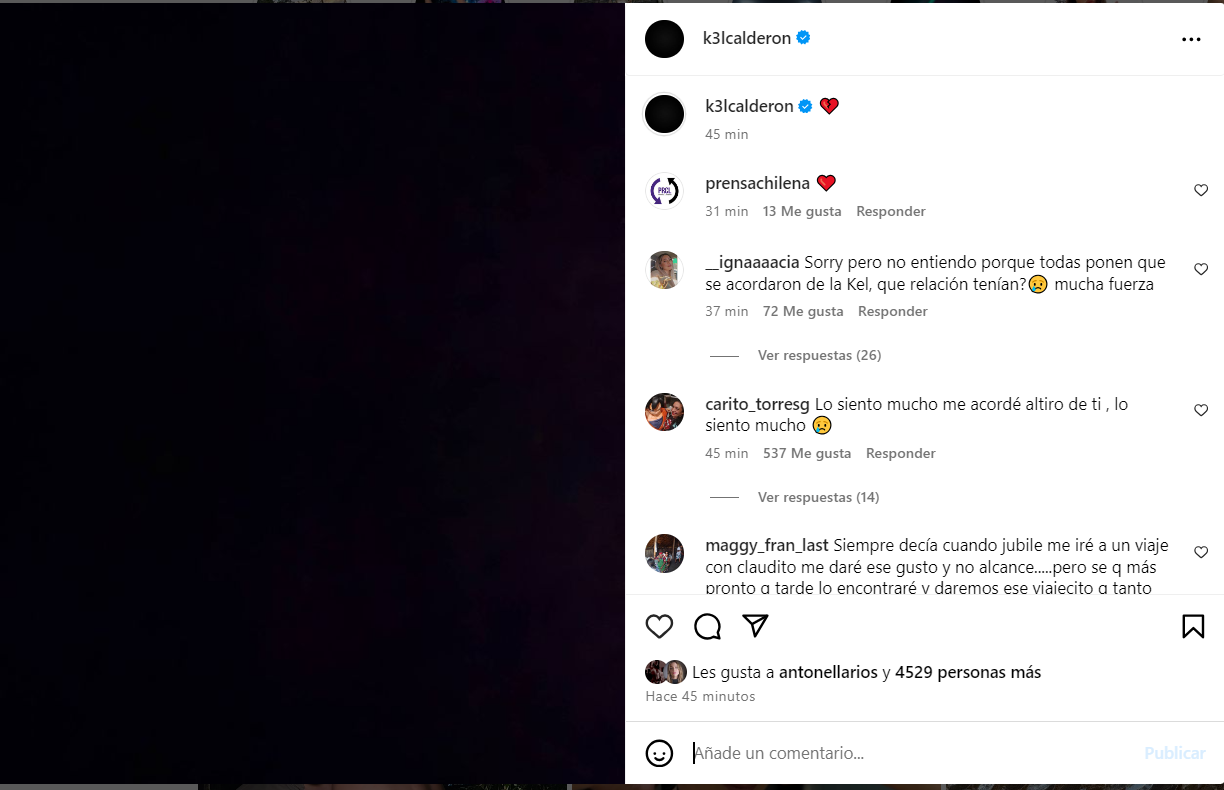 "Lo siento mucho, me acordé al tiro de ti, lo siento mucho" y "supe de la noticia y lo primero que se me vino a la mente fuiste tú, te mando un abrazo", escribieron algunos de los seguidores de Kel en la emotiva publicación que solo fue acompañada de un emoji de corazón roto.