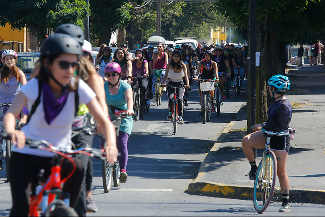 Cientos de mujeres de la agrupación Callejeras Autoconvocadas Bio Bio realizan en estas horas una cicletada en la Plaza Condell de Concepción.