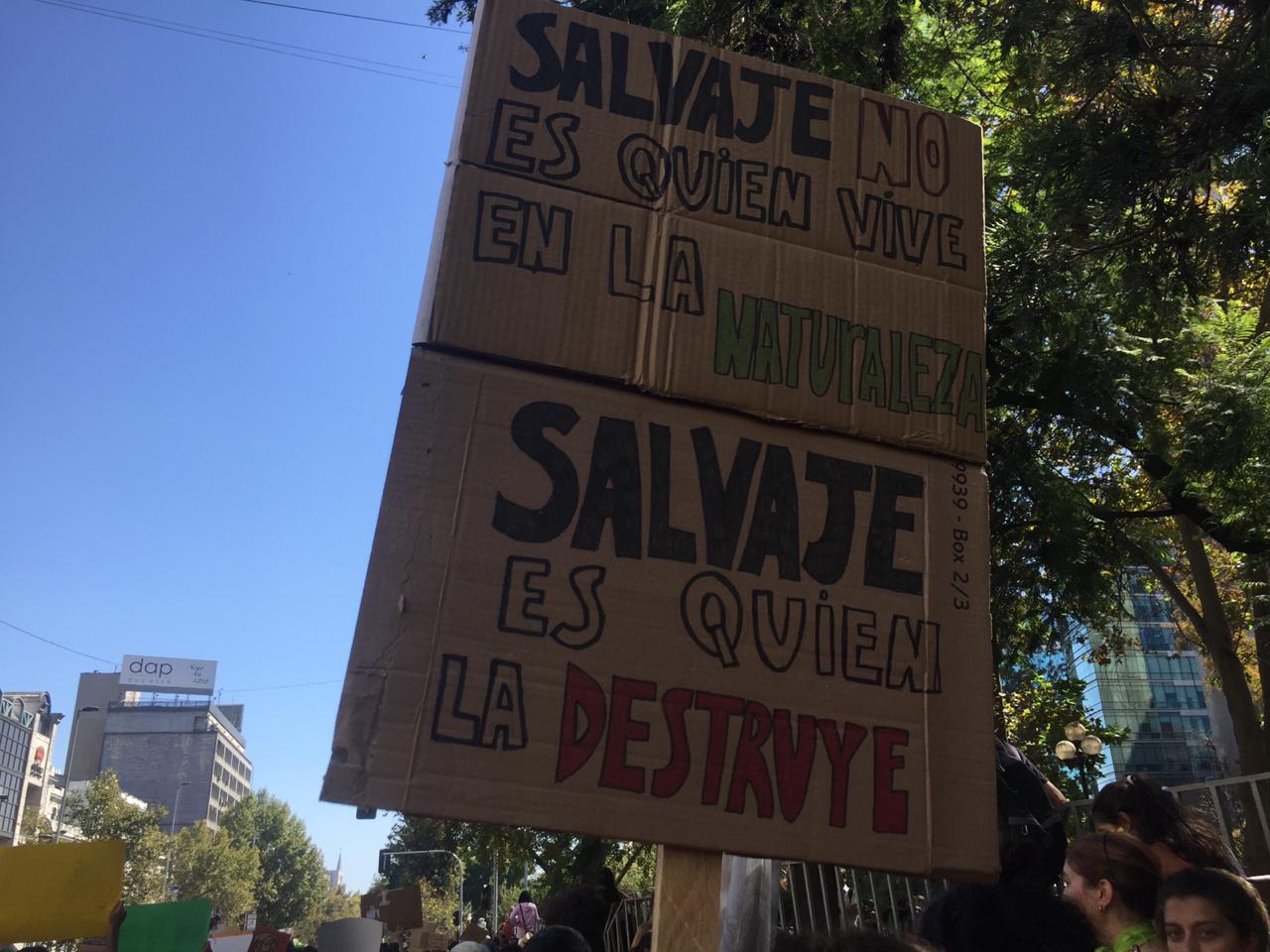 A lo largo de la manifestación en la Región Metropolitana, se pudieron ver varios carteles con distintos mensajes referentes al cambio climático.