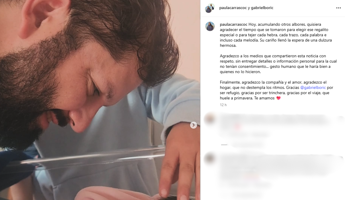 Paula Carrasco, pareja del presidente Gabriel Boric, compartió un emotivo mensaje tras convertirse en madre de Violeta, su primera hija con el mandatario.