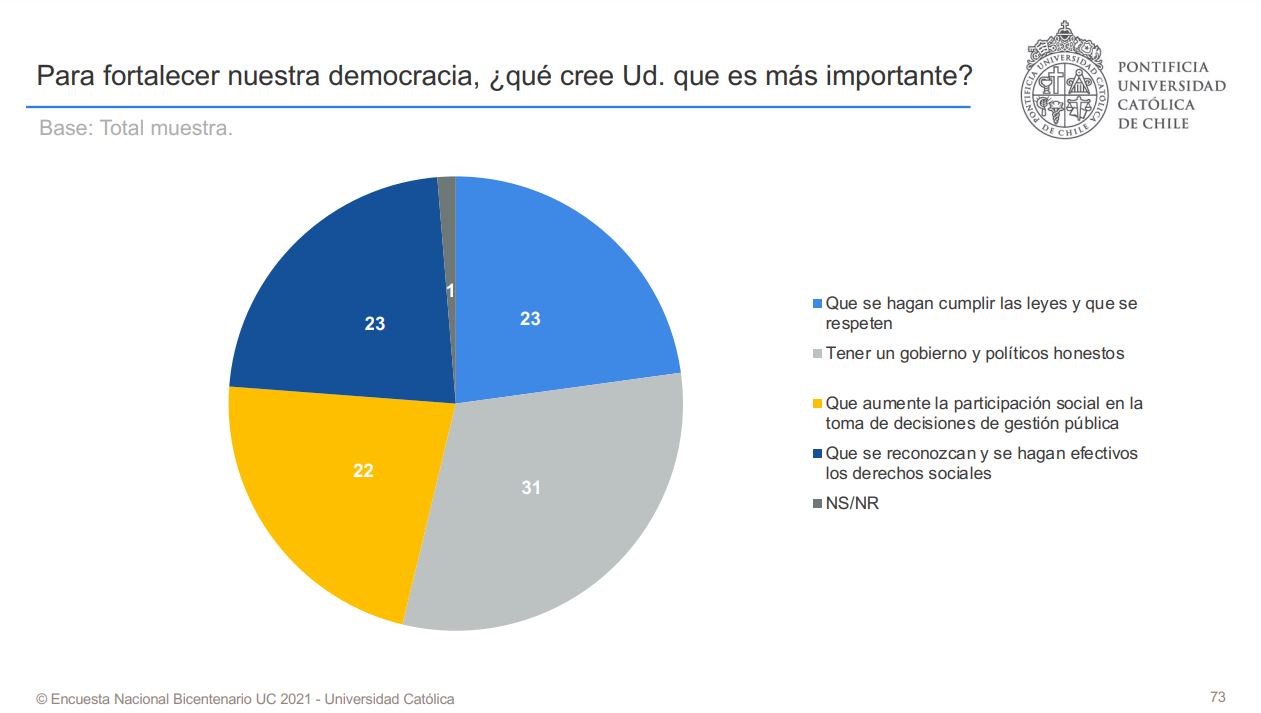 Los resultados también revelaron que existe un 50% de credibilidad en que la Constituyente realizará cambios efectivos a nuestra carta fundamental y que su tarea más relevante será la consolidación de instituciones más honestas y confiables.