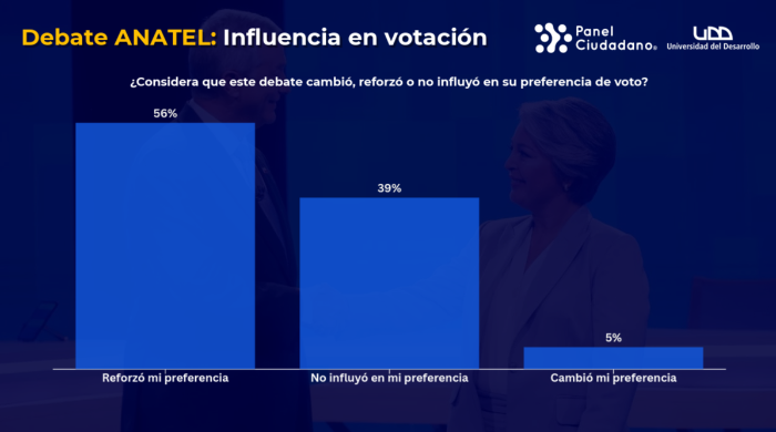 En una segunda pregunta sobre el último cara a cara de los aspirantes a La Moneda antes de la elección del domingo, el estudio consultó si "considera que este debate cambió, reforzó o no influyó en su preferencia de voto".