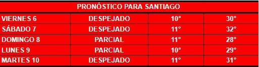 Los termómetros podrían alcanzar 34° en los valles de la zona central, advierte la proyección de la Dirección Meteorológica. Este sábado será el día de más calor durante el presente evento en Santiago.