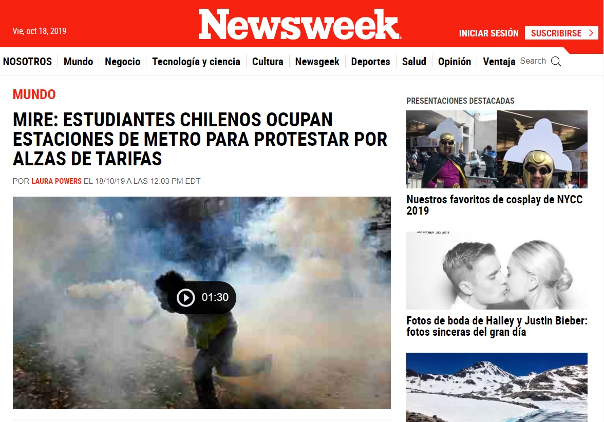 En tanto, el medio estadounidense NewsWeek tituló "Estudiantes chilenos se toman estaciones de Metro para protestar por alza de tarifas".