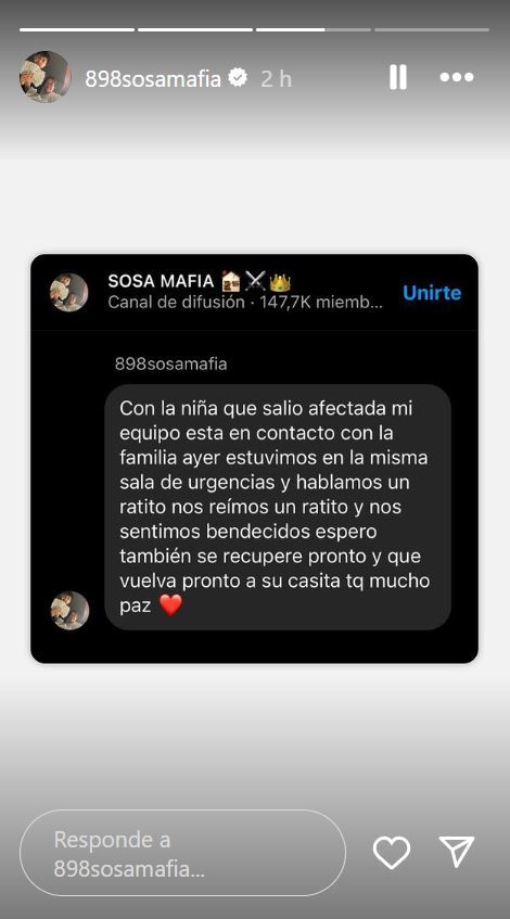 Por su parte, Julianno Sosa dio a conocer en sus stories de Instagram que se puso en contacto con la mujer afectada.